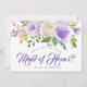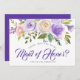 Ask this important question in style with this purple Will You be My Maid of Honour card? Soft pink and ivory white flowers are the perfect complement to the deep purple tones. Beautiful, elegant and modern floral arrangement. Maid of Honour is written in a dramatic script that lets your friend know how important she is. The remainder of the text is a simple black font.