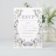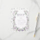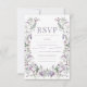 Dive into contemporary elegance with this rsvp card tailored for a bohemian rustic wedding adorned with purple floral motifs. Highlighting a delicate wreath of purple and lavender blooms, this customisable card allows you to personalise your wedding experience. Enhance its modern appeal by adding the names of the bride and groom on the reverse side, elevating the overall sophistication of your wedding festivities.