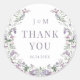 Purple floral wreath boho garden wedding thank you classic round sticker
