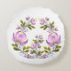 Decorative round pillow featuring a hand-painted purple flower wreath with green leaves. Nature-inspired design adds color and charm to any room — perfect for your couch, bed, or as a unique gift for art lovers.