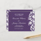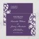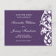 An elegant white flourish design is featured on a purple background. A stylish way to announce your wedding date!