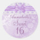 This Elegant customisable Sweet Sixteen Sticker features a purple bow & white lace on a purple floral background. Customise it by adding your details in the font of your choice!