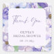 Purple Flower Script Bridal Shower Thank You Square Sticker