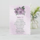 Unique table number seating chart card featuring romantic dusty purple flowers and green leaves.