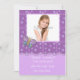 Pretty and feminine photo invitation with purple flowers, lace trim and cute butterfly. Perfect for birthdays for girls of all ages. Easy to customise with the details of your event and your own photo.