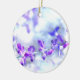 This lovely holiday ornament features one branch of incredible luminous purple, lilac and magenta coloured sage blossoms. They are set against a background that glows in pale blue, silver, pink and white.