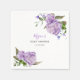 Elegant floral theme baby shower paper napkin featuring watercolor illustration of purple peony flowers with greenery.