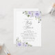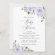 Invite friends and family in style and set the tone for your special day with this charming baby shower invitation. Design features purple watercolor flowers and greenery on white background.