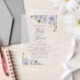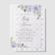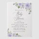 Invite friends and family in style and set the tone for your special day with this charming baby shower invitation. Design features purple watercolor flowers and greenery.