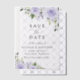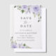 Invite friends and family in style and set the tone for your special day with this charming save the date card. Design features purple watercolor flowers and greenery.