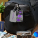 Highlighted, beautiful purple flowers on a grey background. Reverse is grey with purple writing for your ID infor, or you can leave it blank. You can also change the colours of the background and writing.