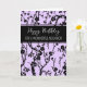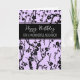 Birthday card for neighbour with modern purple and black flowers design and thoughtful verse.