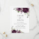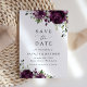 Invite friends and family in style and set the tone for your special day with this charming save the date card. Design features plum purple watercolor flowers and greenery on white background.