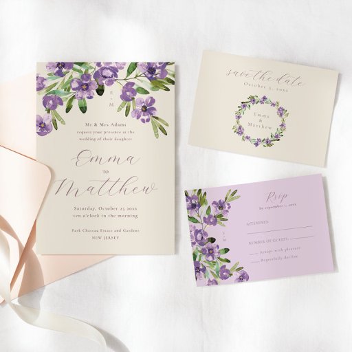 Watercolor Purple Floral Wedding StationeryDesigned by Claudia Orengo Guardiola