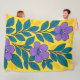 Purple Flowers & Teal Leaves on Yellow Background Fleece Blanket