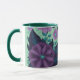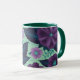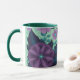 Purple Flowers with Leaves on Mint Background Mug