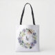 Purple Flowers Wreath Monogram Tote Bag
