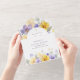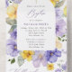 Invite friends and family in style and set the tone for your special day with this elegant baptism invitation. Design features purple and yellow watercolor flowers and greenery on white background.