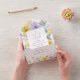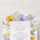 Invite friends and family in style and set the tone for your special day with this elegant baptism invitation. Design features purple and yellow watercolor flowers and greenery on white background.