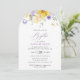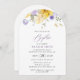 Invite friends and family in style and set the tone for your special day with this elegant baptism invitation. Design features purple and yellow watercolor flowers and greenery on white background.