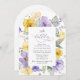 Invite friends and family in style and set the tone for your special day with this charming birthday invitation. Design features purple and yellow watercolor flowers and greenery on white background.