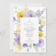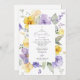 Invite friends and family in style and set the tone for your special day with this elegant confirmation invitation. Design features purple and yellow watercolor flowers and greenery on white background.