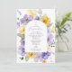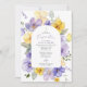 Invite friends and family in style and set the tone for your special day with this elegant confirmation invitation. Design features purple and yellow watercolor flowers and greenery on white background.