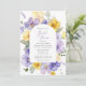 Invite friends and family in style and set the tone for your special day with this charming bridal shower invitation. Design features purple and yellow watercolor flowers and greenery on white background.