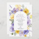 Invite friends and family in style and set the tone for your special day with this elegant first holy communion invitation. Design features purple and yellow watercolor flowers and greenery on white background.