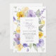 Invite friends and family in style and set the tone for your special day with this charming wedding invitation. Design features purple and yellow watercolor flowers and greenery on white background.