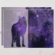 Dark purple nights sky full of stars with dark blue shadowed trees and wolf shape. This scrapbook paper is perfect for dark journals, book of shadows or wild forest creations. The design has a double page spread style so you simply fold to create two pages. The rear image is purple without graphics for you to add your own paper collages and scraps.