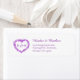 Beautiful and romantic, these wedding RSVP address labels feature a hand-inked heart of delicate purple forget-me-not flowers. Designed to add an elegant finishing touch to your invitations, these floral return address labels make it easy for guests to send back their RSVP cards in style. Perfect for purple, botanical, and garden-themed weddings, this unique design combines timeless charm with practical convenience. Ideal for coordinating with matching stationery for a cohesive and polished wedding suite. © Original hand-inked artwork by Sarah Trett for www.mylittleeden.com