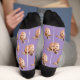 Funny purple custom face crew socks for moms personalised with your daughter's favourite photo. Upload a cutout of the face with a transparent background and it will automatically be replicated all over the socks, on both sides. To make the cut-out, you can download any mobile or computer app, or use the program named Canva or Photoshop.