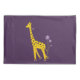 Funny giraffe pillow case with a cartoon giraffe nibbling on a light purple flower and holding some flowers with its tail while roller skating, on dark purple background. This cute giraffe design will appeal to people who love giraffes and cute cartoon illustrations.