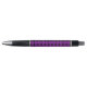 Cool and trendy pen that features an image of a little, purple Cranesbill Geranium flower on a black background and printed in a repeating pattern.