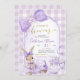 Purple Gingham Coquette Bunny Brew Tea Baby Shower Invitation