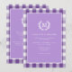 Purple Gingham Monogram Crest QR Code Invitation