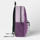 Playfully painted purple gingham plaid stripes pattern printed backpack with optional personalisation.