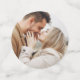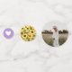 Rustic purple gingham bbq baby shower table confetti with sunflowers, a cute heart, and two photos.