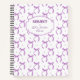 Modern girly coquette purple bow pattern notebook/journal/diary. Unique gift for her, back to school, office, work and more. Customise the notebook with a name and a title.