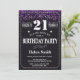 Purple Glitter 21st Birthday Invitation. White Typography. Black and White Chalkboard Background. Adult Birthday. Male Men or Women Birthday. Kids Boy or Girl Lady Teen Teenage Bday Invite. 13th 15th 16th 18th 20th 21st 30th 40th 50th 60th 70th 80th 90th 100th. Any Age. For further customisation, please click the "Customise it" button and use our design tool to modify this template.