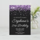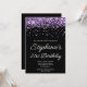 Purple Glitter Black 21st Birthday Invitation