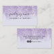 Business card featuring a chic script, modern typeface, and purple glitter effect.