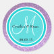 Purple Glitter & Deep Turquoise Wedding Monogram Classic Round Sticker