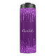 A deep purple background with elegant purple faux glitter drips, paint drip look. White coloured text. Personalise and add your name. The name is written with a white hand lettered style script.