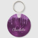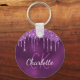 A deep purple background decorated with faux glitter drips, paint dripping look. The purple background colour is uneven. Personalise and add your name and monogram initials. White and purple coloured text. The name is written with a modern hand lettered style script.