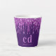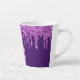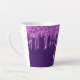 A girly and trendy monogrammed mug. A chic deep purple background decorated with faux glitter drips, paint dripping look. Personalise and add a name and monogram initials. Purple coloured letters.