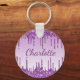 Purple glitter drips monogram name key ring