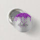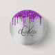 Purple glitter drips silver monogram name 3 cm round badge