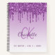 A purple, violet gradient background with deep purple glitter drips, paint dripping look. Personalise and add your monogram initials, a name and a title. The name is written in purple with a modern hand lettered style script. Perfect for business, school, diary, work, personal/family life.